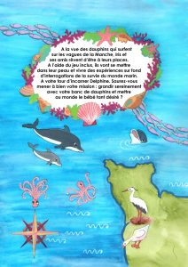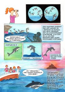 Iris et ses amis rêvent d’être à la place des dauphins. A l’aide du jeu inclus, ils vont se mettre dans leur peau et vivre des expériences sur fond d’interrogations de la survie du monde marin.
